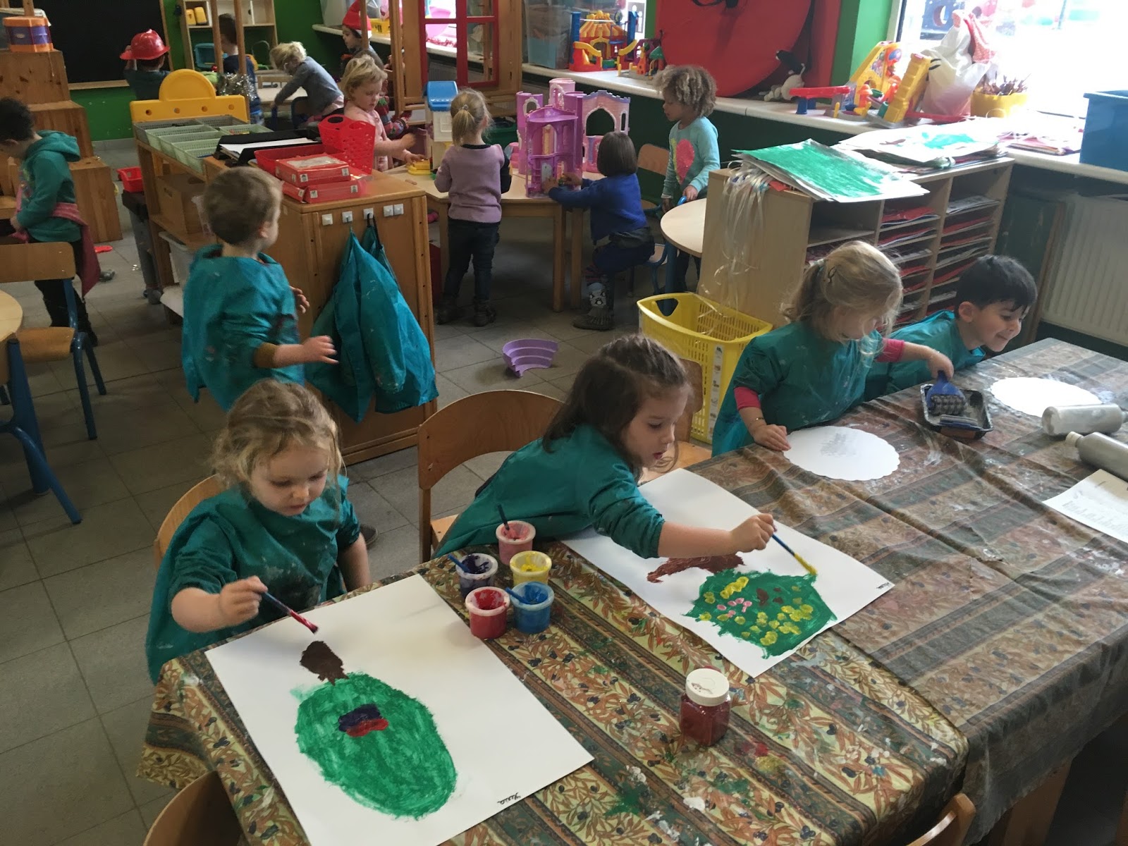 De kleuters ontdekken dat de kerststaafjes perfect door de gaatjes van de kast passen...